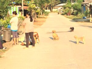 タイの田舎の飼い犬の9割以上は放し飼いにされています。放し飼いにされていても、意外なほど行動範囲が狭いのです。